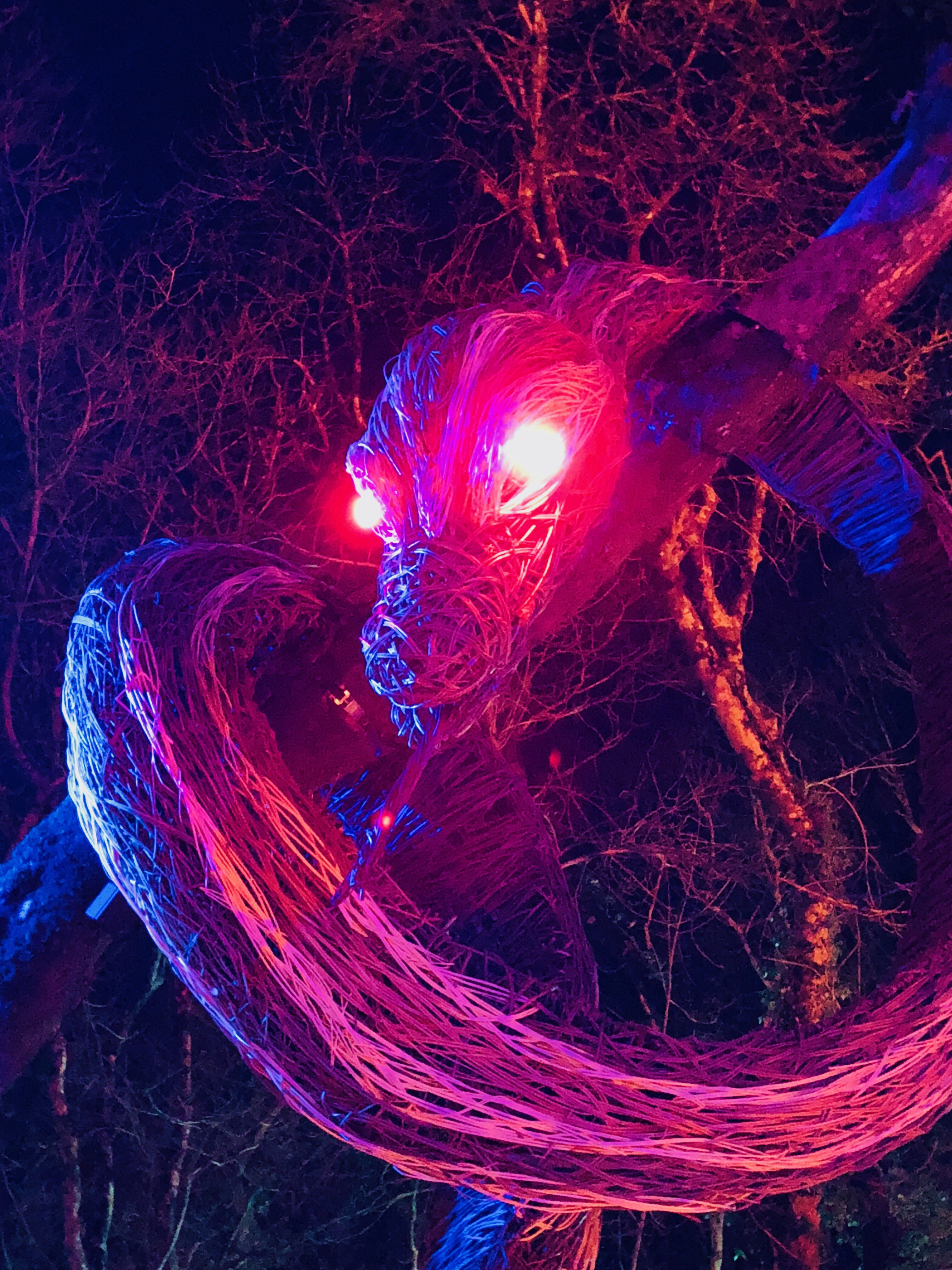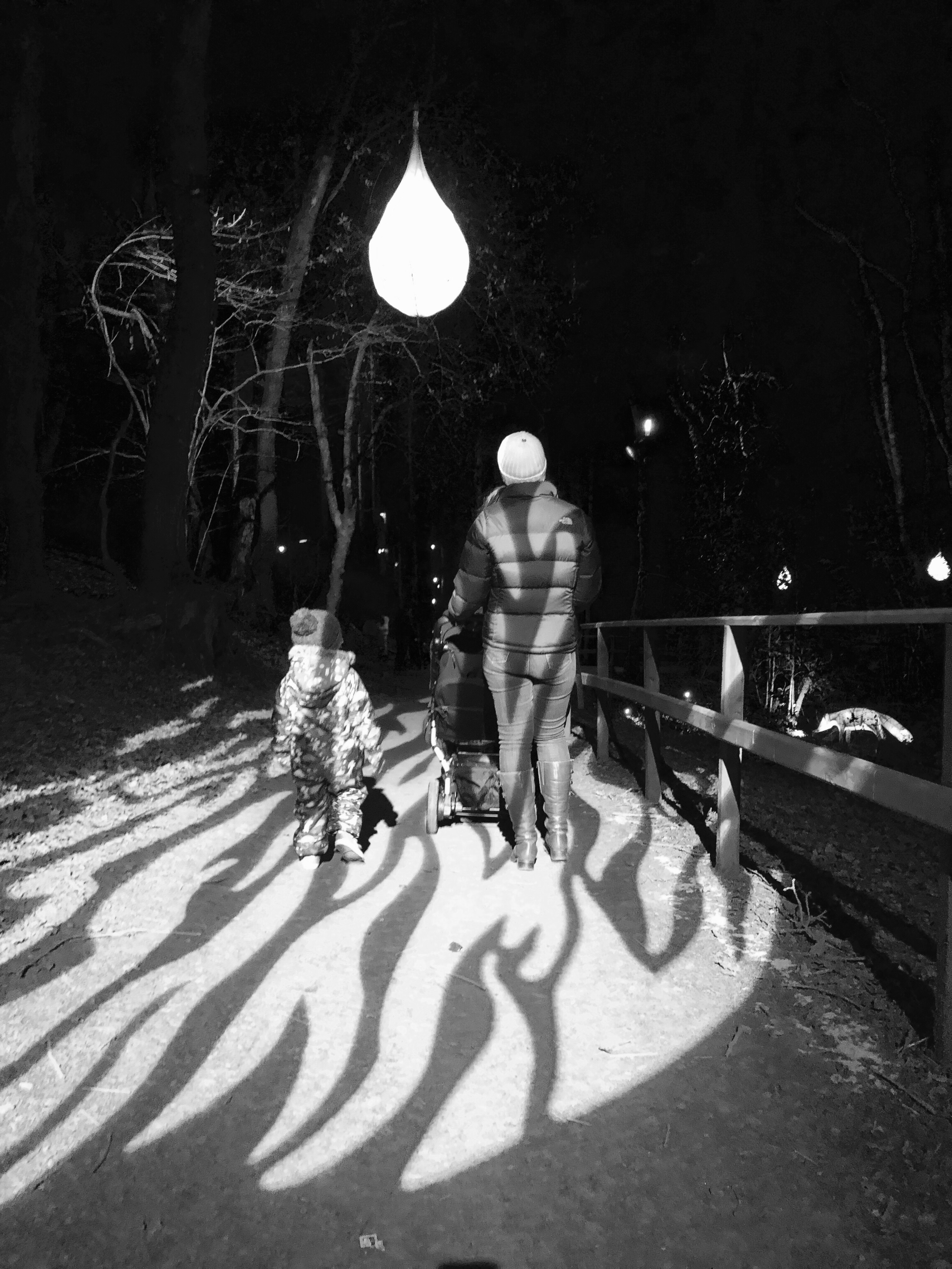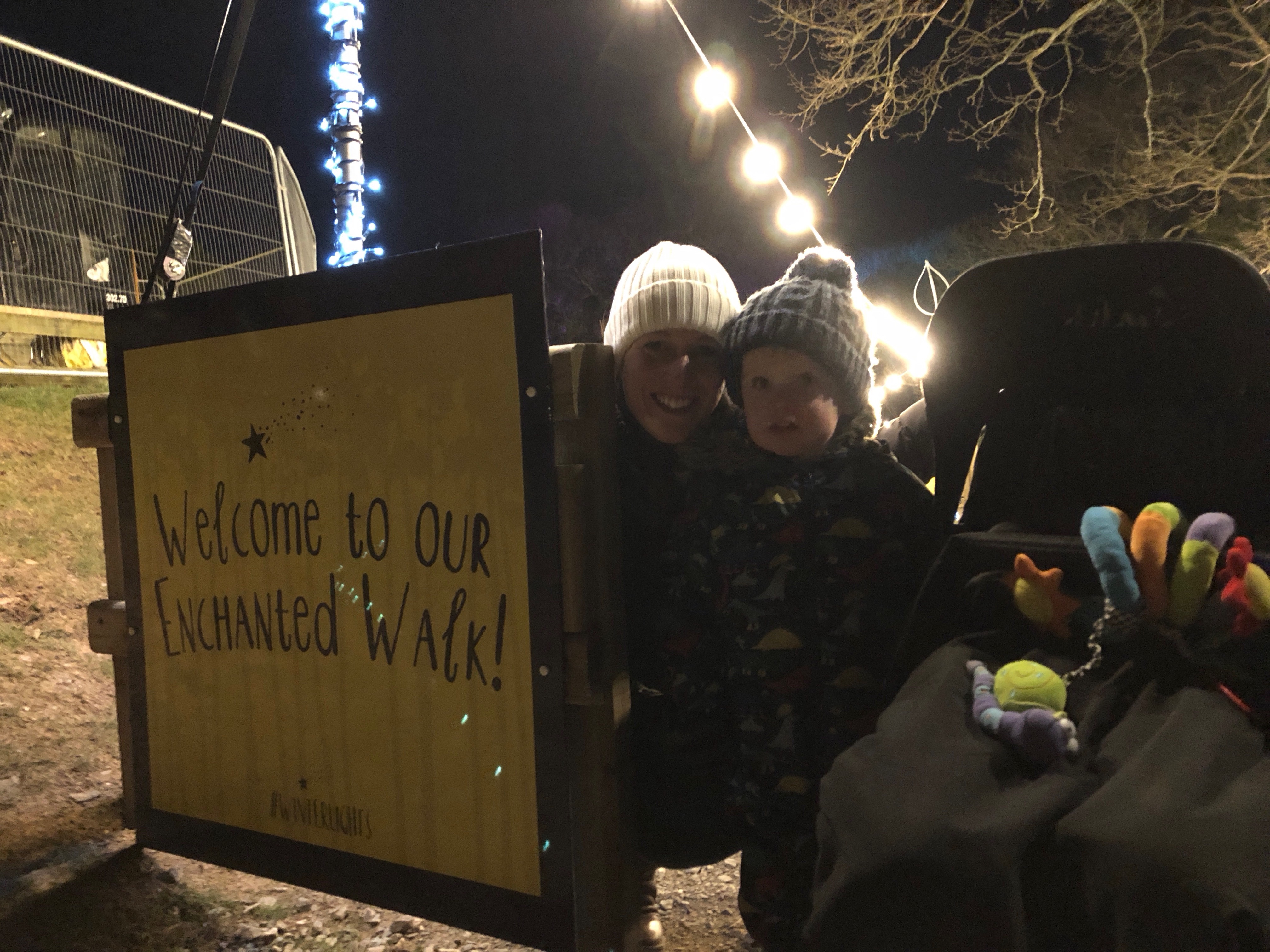 Set in the woods, the enchanted walk featured hundreds of sparkling lights a fairy village, noisy bugs, huge foxes, a singing snake, ice skating mice and even a giant washing line.